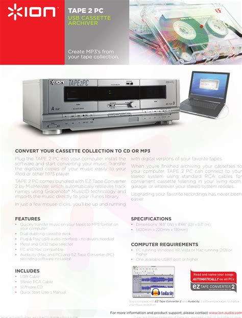Service manual, specifications ion tape 2 pc service. Web view online or download pdf(2.44 mb) ion tape2pc user's manual • tape2pc cassette players pdf manual download and more ion online manuals Ion tape2pc stereo system pdf manual download.