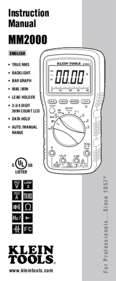 Mide tensión de ca / cc, tensión de baja impedancia,. Mm2000 multimeter pdf manual download. Instruction manual, manual, fuse testing klein tools mm2000 instruction manual (25 pages).